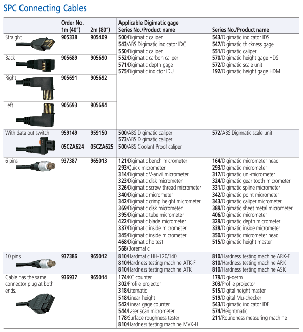 Mitutoyo 06AGL011 Digimatic Cable, Straight,1M S1 Interface