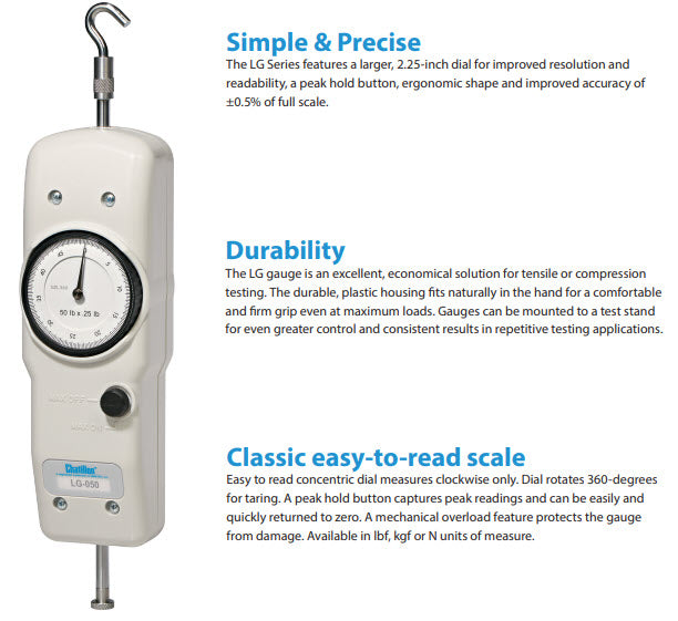 Chatillon LG-10N, Mechanical Force Gauge : 10 x 0.05 N : #10-32M
