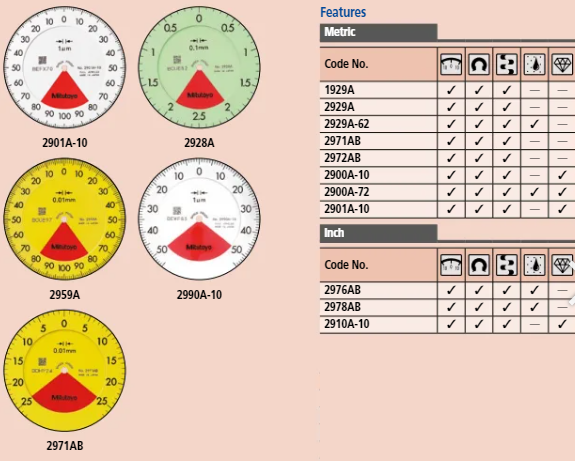 Dial Gauge, Flat Back, ISO Type One Revolution, Shock- & Dustproof, 1mm, 0,01mm 2972AB