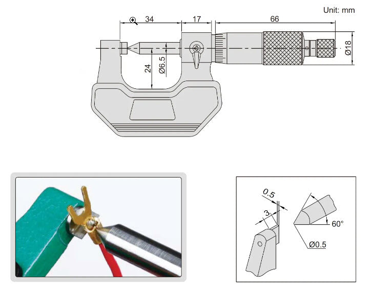 Inspec Single Point Micrometer 0-25mm x.01mm Code 200-51-000 Spindle point 60 deg Item number 200-51-000