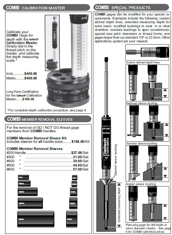 If measurement of depth of the thread hole is not needed – we recommend a Traditional Leitech Gauge.