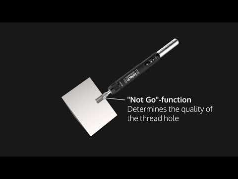 When the Combi Gauge is screwed in to a thread hole, the scale divided telescope sleeve is pushed up in the handle. The thread depth can then be read directly on the sleeve.