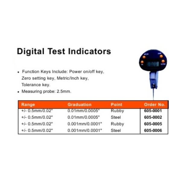 MHC 605-0002 Digital lever type indicator Steel Point, Range +/- 0.5mm/0.02", Grad, 0.01mm/0.0005"