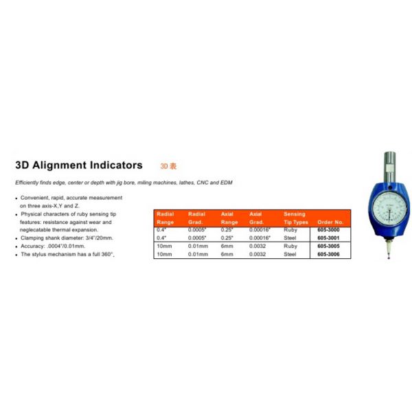 Contact point is electrically insulated for safe applications on all CNC Centers and EDM machines.