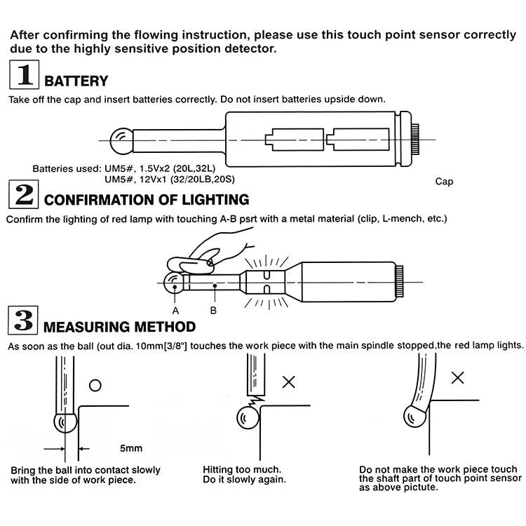 MHC 805-3017 Electronic long shank Edge Finders Beep Alert .0002"/.005mm Accuracy, 20mm x 190mm(shank diameter x OAL), 10mm Ball