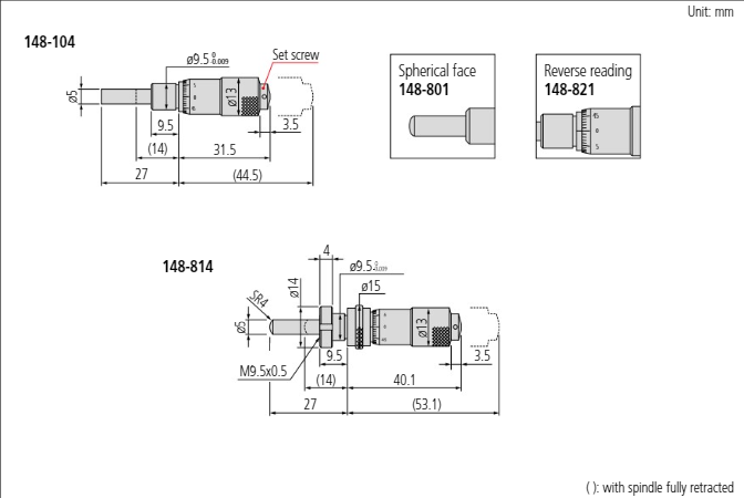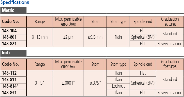 Micrometer Head, Small Standard Type 0-0,5", 0,001", Spherical, with Clamp Nut/Spindle Lock 148-814-10