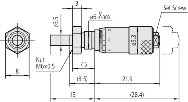 Micrometer Head, Ultra Small Type 0-0.25", 0.001", Flat, with Clamp Nut 148-204-10