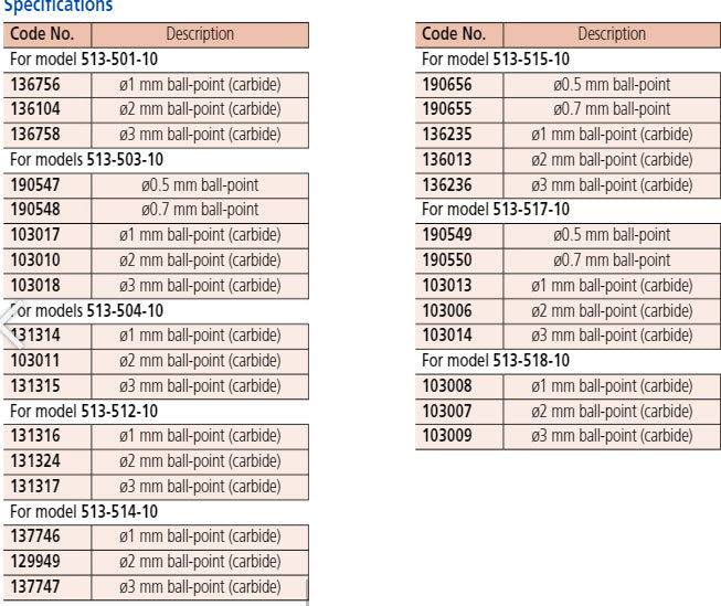 Mitutoyo 1367568 Stylus for Serie 513 D=3mm x 8.6mm, for Indicator 513-501-10