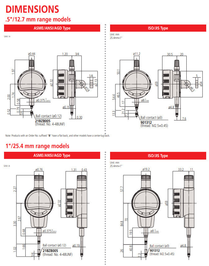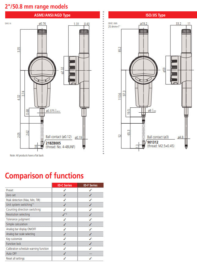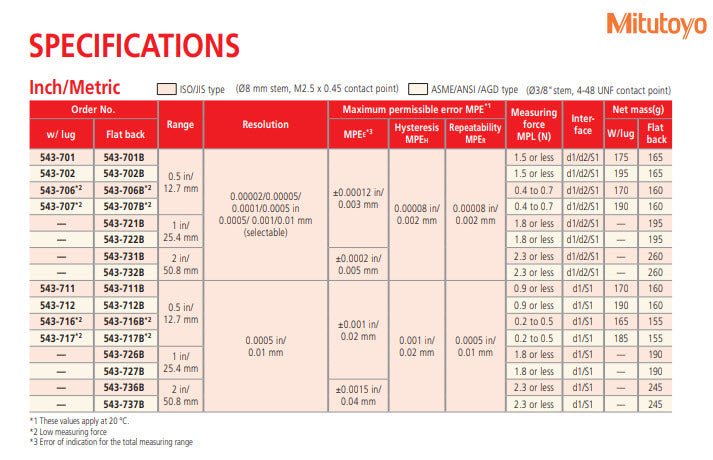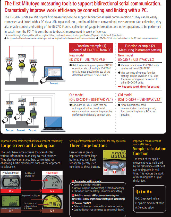 Mitutoyo 543-722B (0.01mm/0.001mm/.0005",.00005") ABSOLUTE Digital Indicator ID-CX Flat Back 0-25mm (0-1″) 3/8" stem
